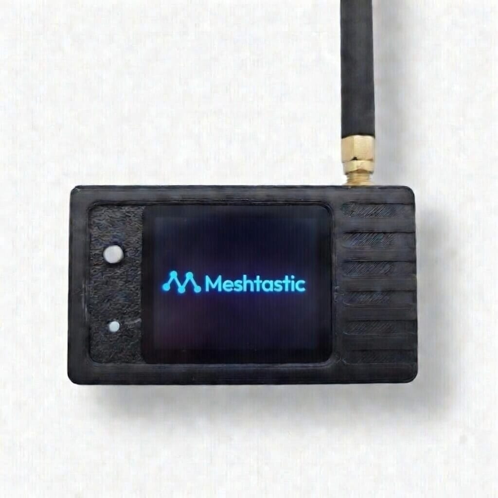 The Mesh Node Radio is a rugged personal companion node transceiver for mesh network connectivity, housing Heltec Automation's WiFi LoRa Node V3 based on the Semtech® SX1262 LoRa® chip and factory pre-loaded with the latest Meshtastic firmware. Interact via smartphone or Win/Mac/Linux PC using WiFi, Bluetooth LE, or USB (USB-A/C cable included). The internal 1100 mAh LiPo cell may be charged from many external 5V sources including phones or power banks (not included).